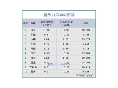 从整体来看,第30周的新势力品牌销量普遍呈现出环比增长的趋势,这进一步证明了新能源汽车市场仍然保持着良好的发展势头。