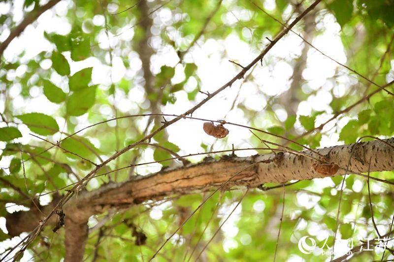 树枝上残留的蝉蜕。人民网 张瀚天摄